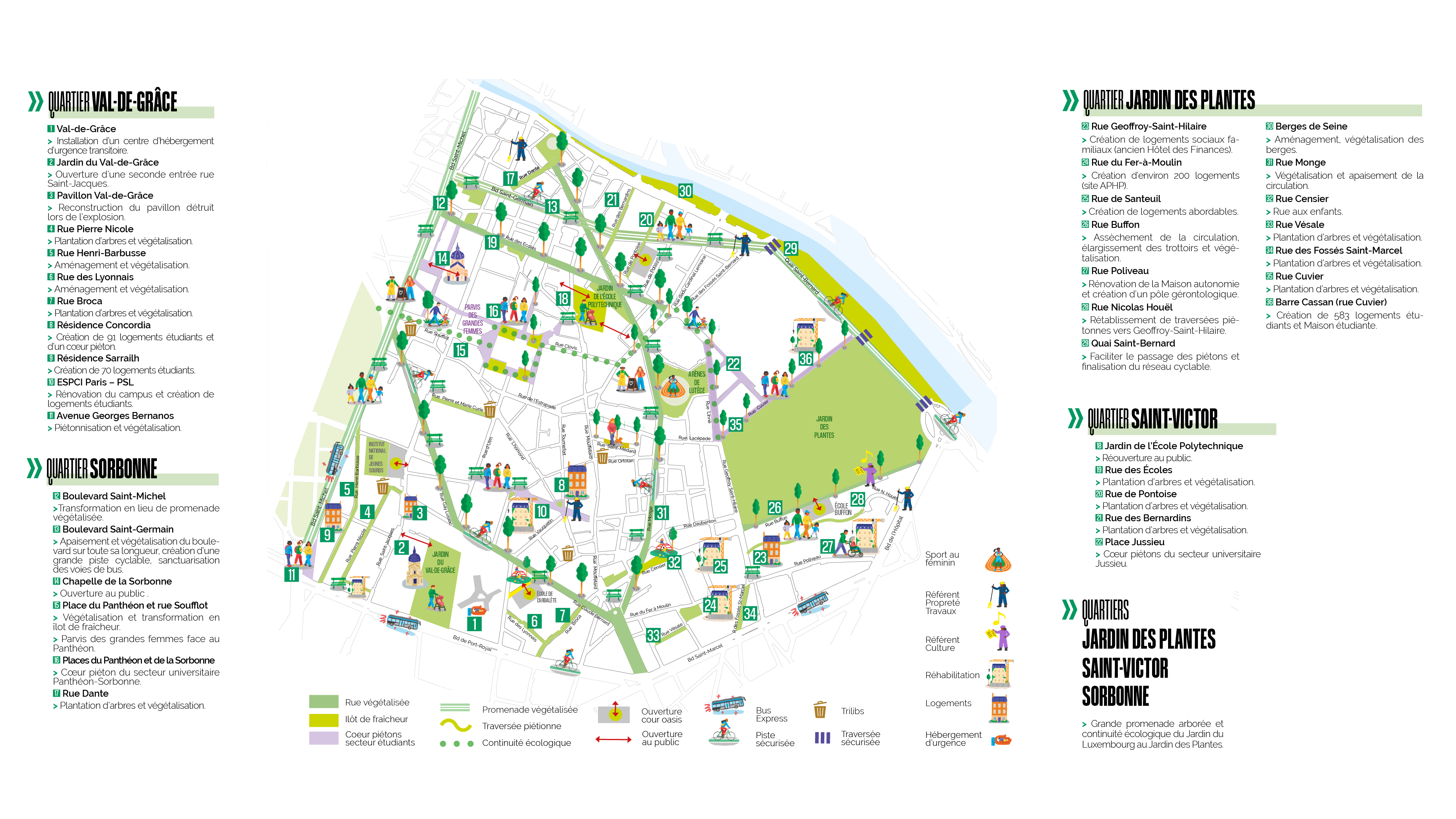 Accélérer la transformation écologique avec la création d’une grande promenade arborée et végétalisée du jardin du Luxembourg au jardin des Plantes et le long de nos grands boulevards.